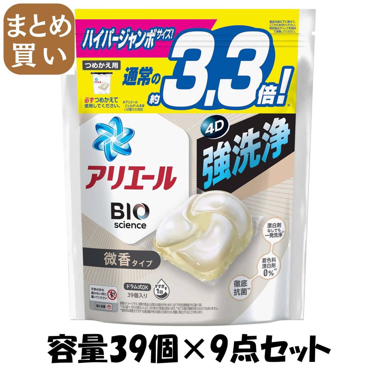 - 【まとめ買い】アリエールジェルボール4D微香 つめかえハイパージャンボサイズ 容量39コ×9点セット P&G 衣料用洗剤