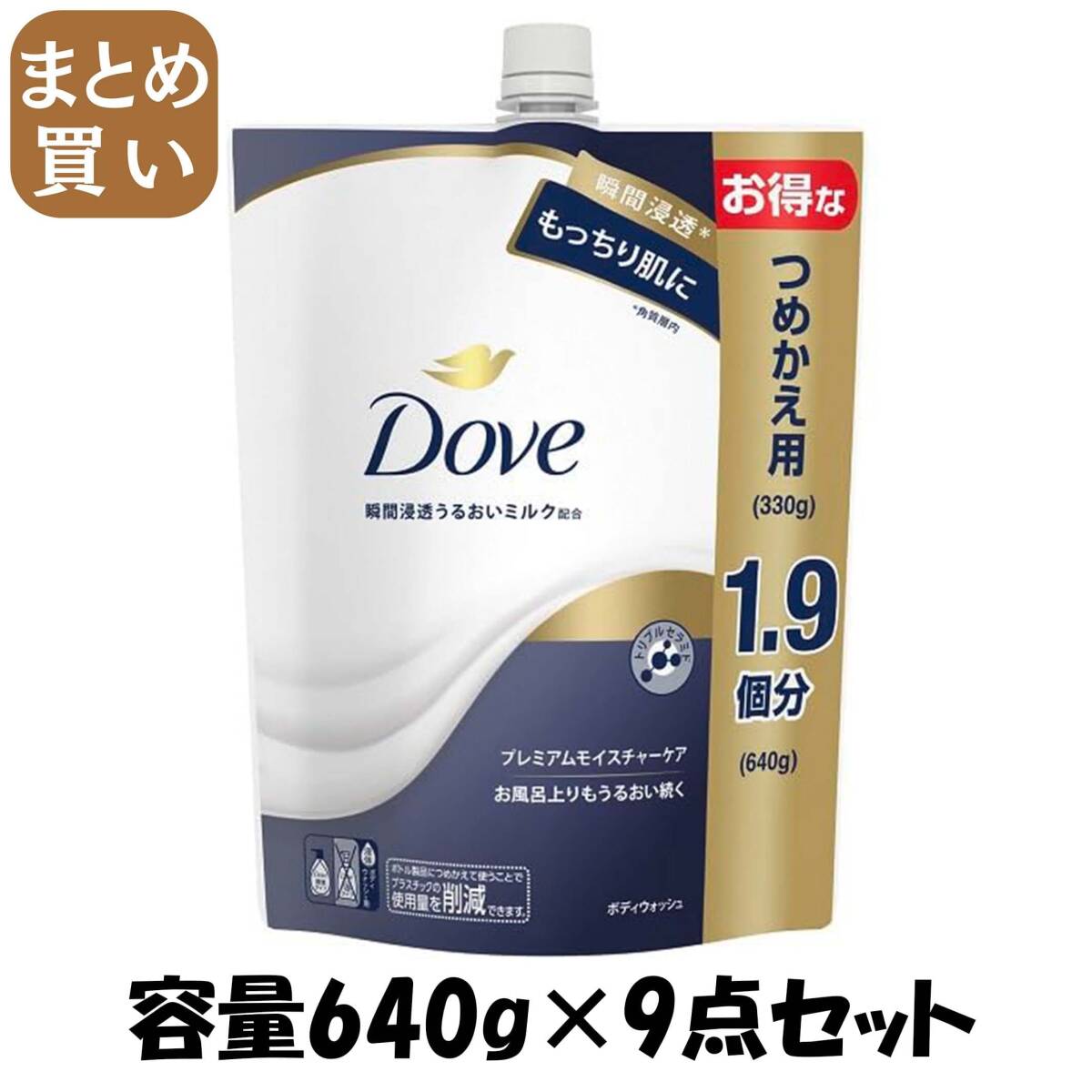 - 【まとめ買い】ダヴ ボディウォッシュ プレミアム モイスチャーケア つめかえ用 640g 容量640G×9点セットボディソープ
