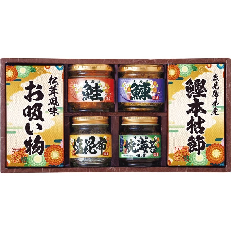 ▼▼▼▼▼▼注意事項▼▼▼▼▼▼・送料込み(送料800円が商品価格に含まれています) 一部地域では追加送料あり。・お取り寄せ商品です。弊社にて手配後、メーカー・卸業者からの直送になります。・まれにメーカー欠品、出荷遅延等が発生致します。問題発生時は別途メールにてご連絡致します。・配送方法の指定、日時指定、置き配、ギフト対応、他商品との同梱配送などは対応できません。・まとめ買いや複数購入の場合は通常より発送に時間が掛かる場合がございます・複数個口の場合、2階以上への搬入ができない場合があります。(その場合は1階での受け渡しとなります)・大型連休、お盆、年末年始などは発送をお休みさせていただく場合がございます・メーカー都合により、パッケージは予告なく変更される場合がございます・梱包用のダンボールはリサイクル品を使用させていただきます。・注文に関するご連絡(注文確定通知・発送通知など)はメールでご案内させていただきます※商品ページの内容について、少しでもご不明な点などがございましたら購入前に一度ご連絡ください▲▲▲▲▲▲注意事項▲▲▲▲▲▲〇商品説明和食ならではの繊細な味を詰合せた食卓にあると嬉しいギフトセットです。〇商品仕様【パッケージサイズ】340×75×175mm【内容】焼きのり入佃煮:85g・鰹本枯節:2.5g×3P、永谷園お吸い物松茸風味4P・塩昆布:18g・鮭フレーク:40g・にしんフレーク:50g×各1【アレルゲン】小麦【生産国】日本【パッケージ形態】化粧箱入【保存方法】常温【賞味期限】製造日より約540日(出典:エルスト)