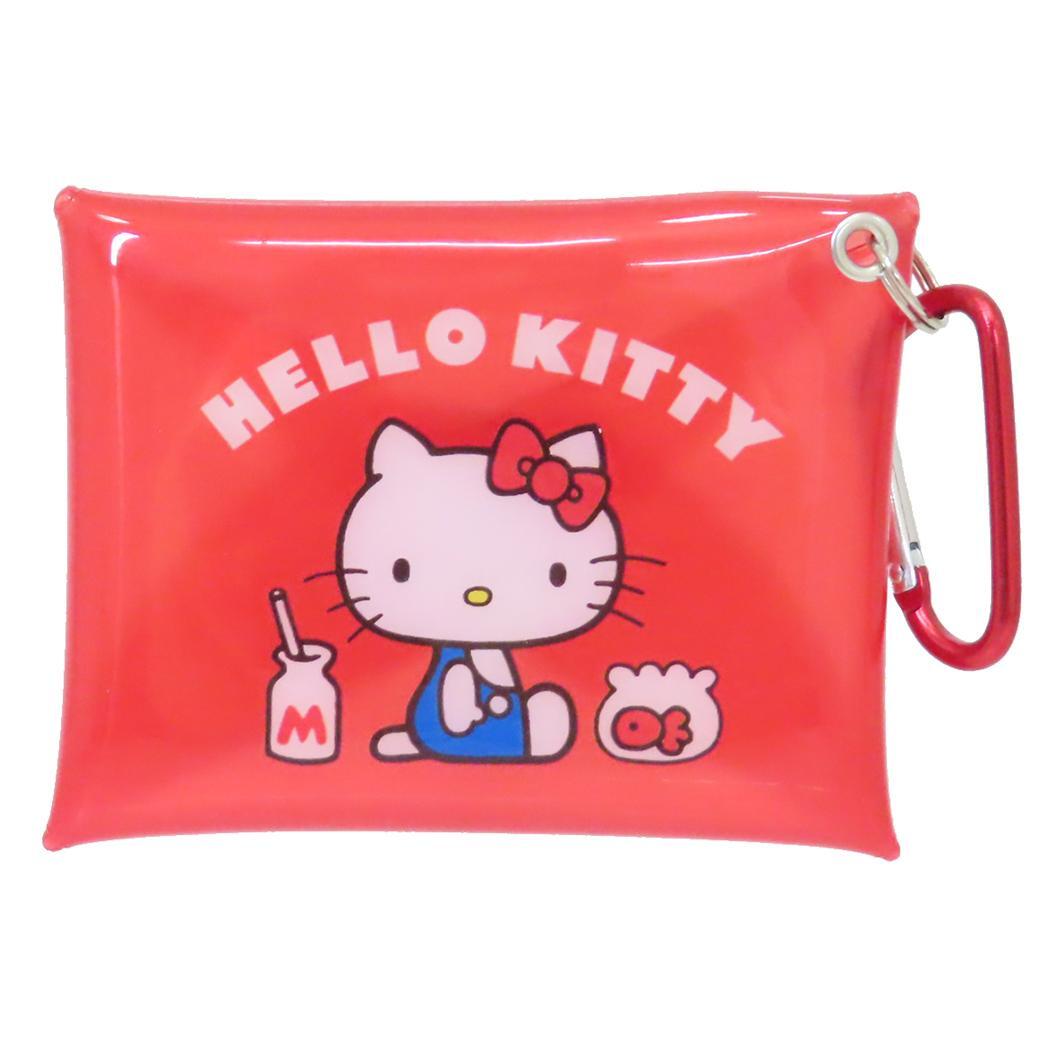 - ハローキティ ミニポーチ カラビナ付きクリアポーチ レッド サンリオ 小物入れ キャラクター グッズ