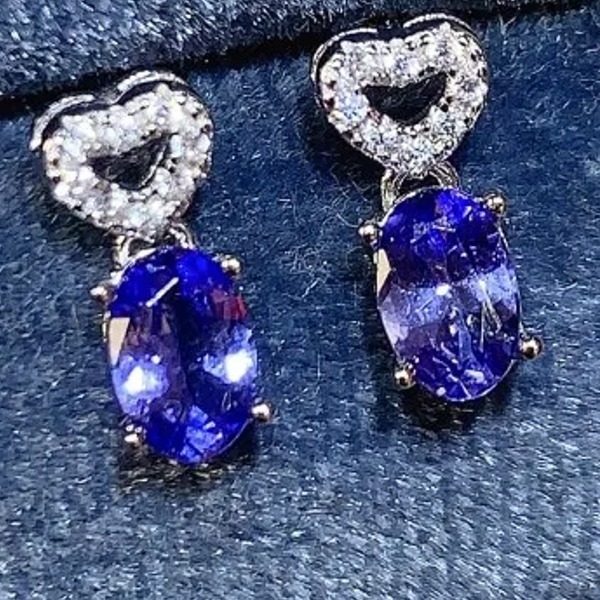 > 女性用天然タンザナイトピアス、4x6mm、925シルバー 、鑑別付き、残り時間4日までに最初に入札すると開始価格で購入可能 Yu_5616