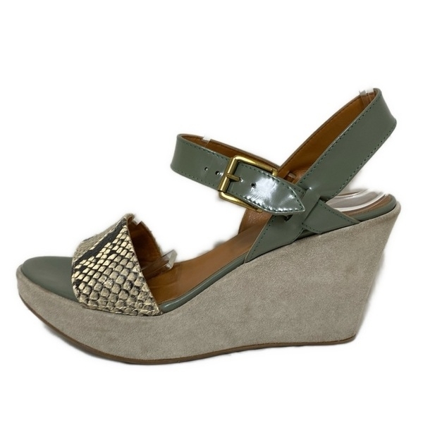 > ファビオルスコーニ FABIO RUSCONI サンダル 38 - レザー グレー×アイボリー×黒 レディース 型押し加工/ウェッジソール 靴