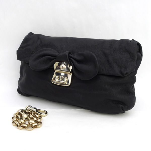> ★ マークジェイコブス チェーンショルダーバッグ リボン レザー ブラック M301031 (0220529864)