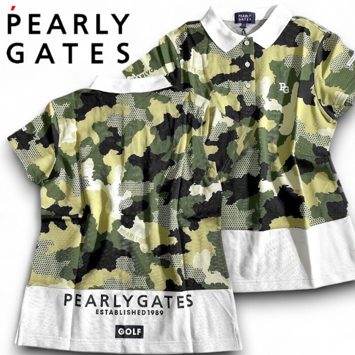 - PEARLY GATES パーリーゲイツ 定価2万 日本製 ドライ鹿の子 迷彩 半袖 ポロシャツ ゴルフウェア レディース 2160512 181 1 ▲023▼50731w05