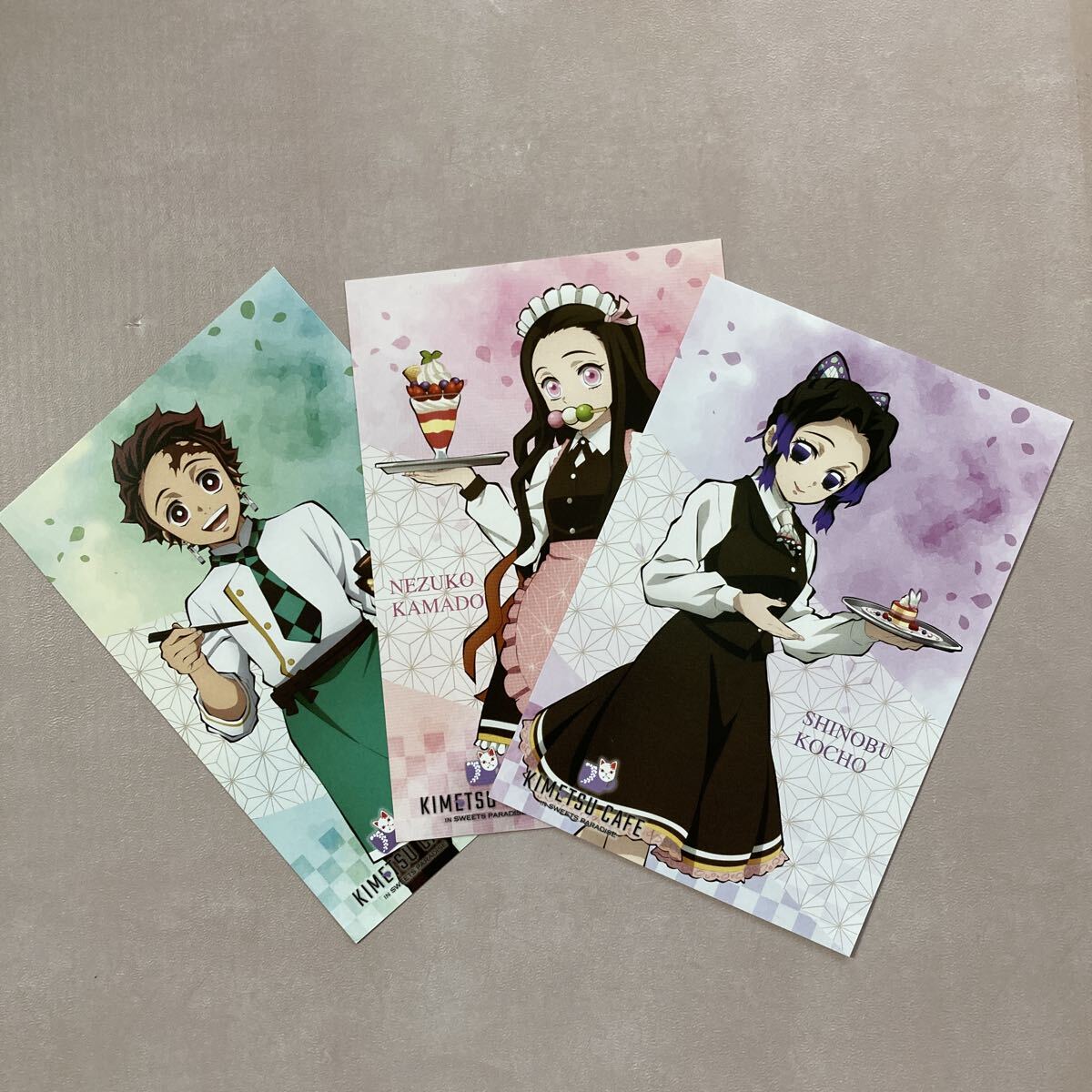- n5917 鬼滅の刃 スイパラ ポストカード 竈門炭治郎 竈門禰豆子 胡蝶しのぶ スイーツパラダイス 特典カード 3枚 非売品 未使用