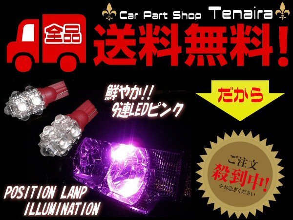 - T10 T16 ウェッジ 12V ピンク LED バルブ 2個 セット 9連 FLUX ポジション スモール ナンバー灯 ルームランプ メール便送料無料/7