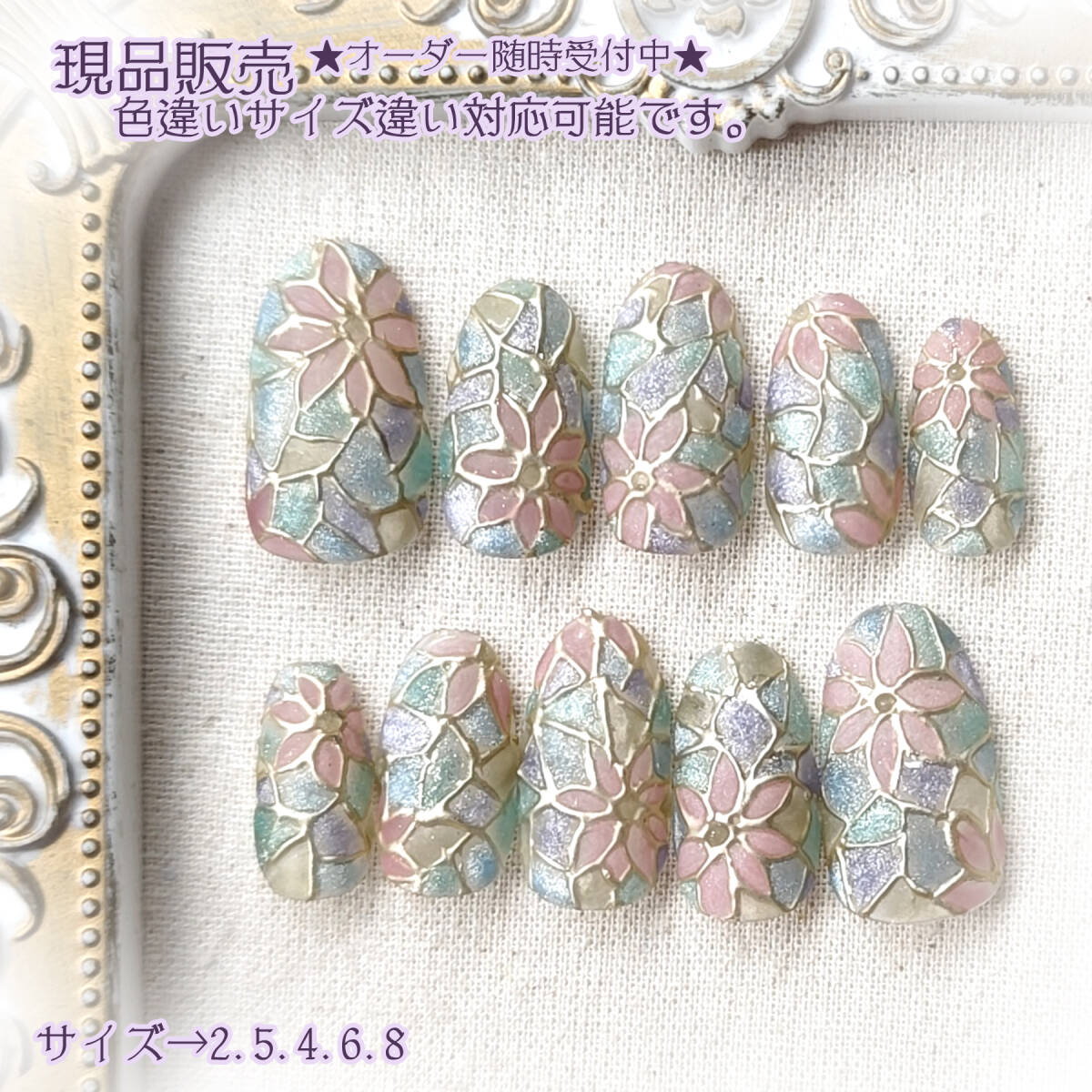 - ★現品★ネイルチップ ジェルネイル ステンドグラスネイル フラワー 201