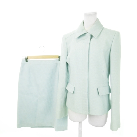 - ハロッズ Harrods スーツ セットアップ 2点セット ステンカラージャケット 総裏地 タイトスカート ひざ丈 ストライプ 総柄 3 L 水色