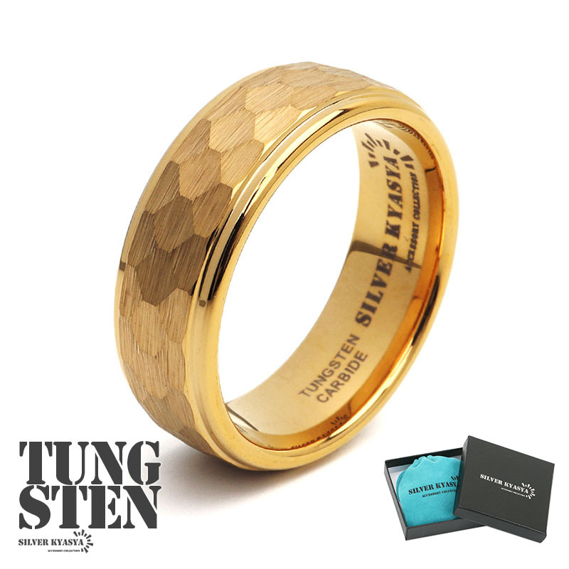 - (26号) タングステン カット リング 指輪 ゴールド 金 つや消し マット 金属アレルギー対応 専用BOX オリジナル