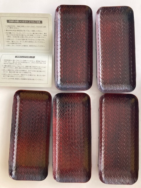 - 未使用 アジロ網おしぼり置き:漆器(鎌倉) トレー 5個セット 1699