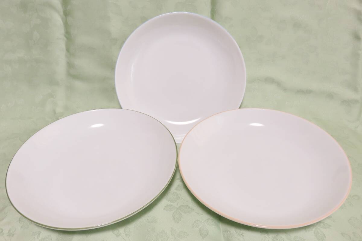 > 未使用 栗原はるみ 直径22cm カラー ライン プレート 3枚セット ホワイト/白 磁器 美濃焼 日本製 カレー パスタ 和洋中 食器 ゆとりの空間