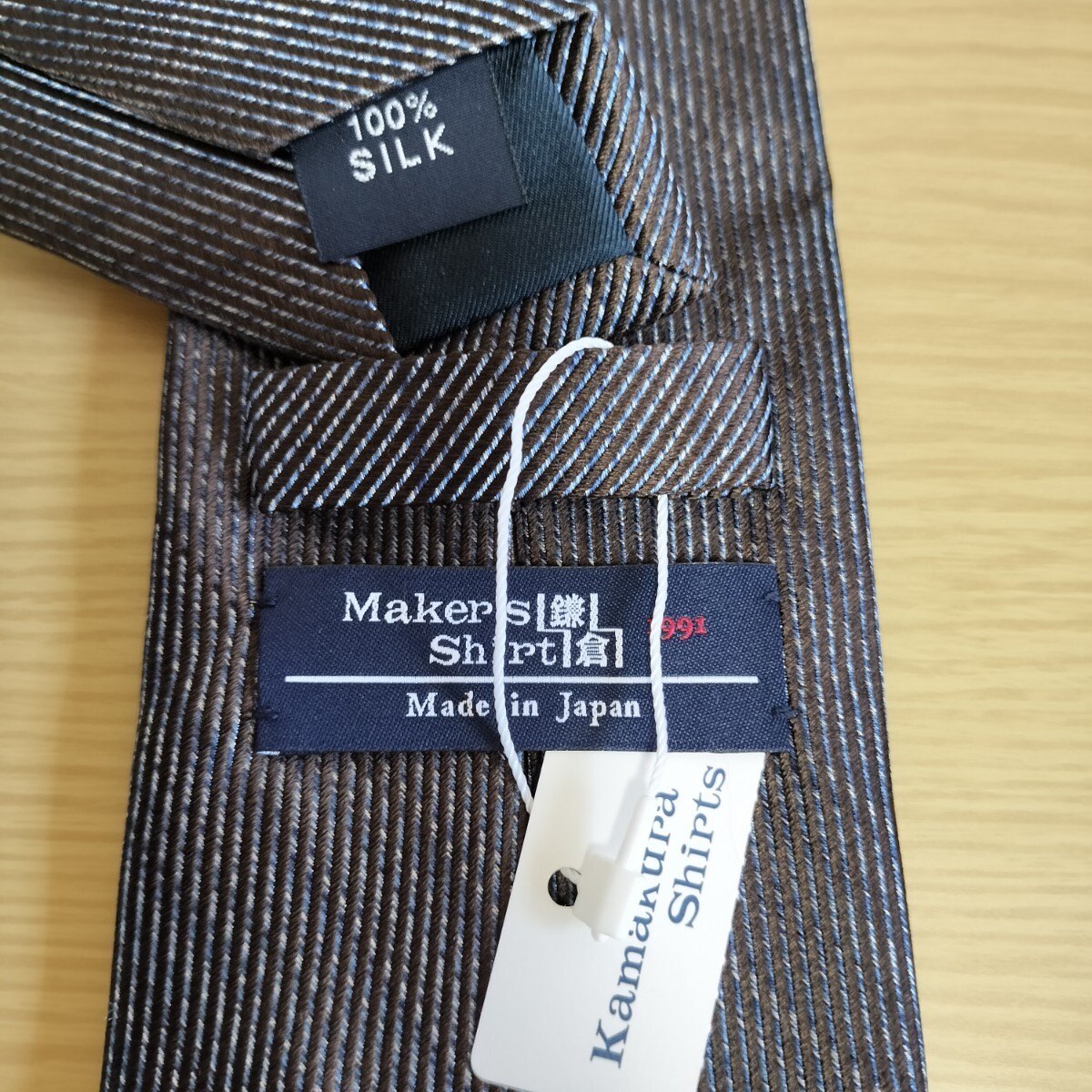 - Maker's Shirt鎌倉シャツメーカーズシャツカマクラ鎌倉 茶色青ミクロ線模様ネクタイ新品 未使用 タグ付き