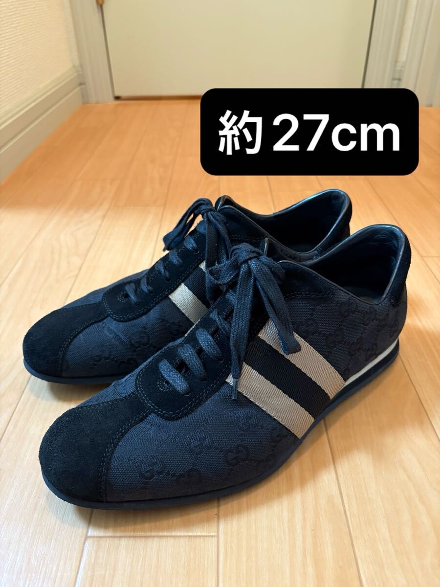 - 約27cm EU42 GUCCI グッチ シェリーライン スニーカー メンズ スエード GG ブラック 黒 靴 シューズ 117711