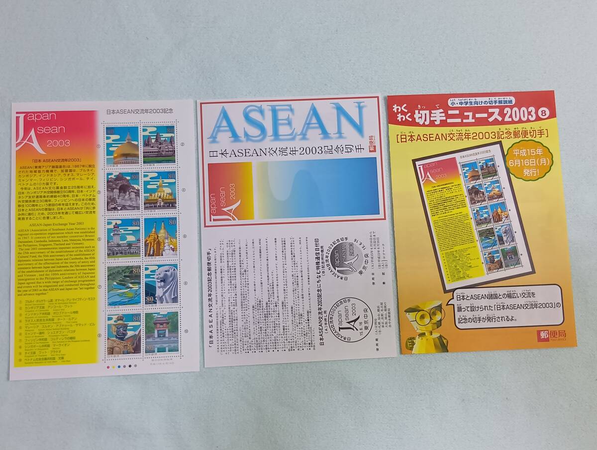 日本ASEAN交流年2003記念 H15 切手シート1枚と解説書とわくわく切手ニュース