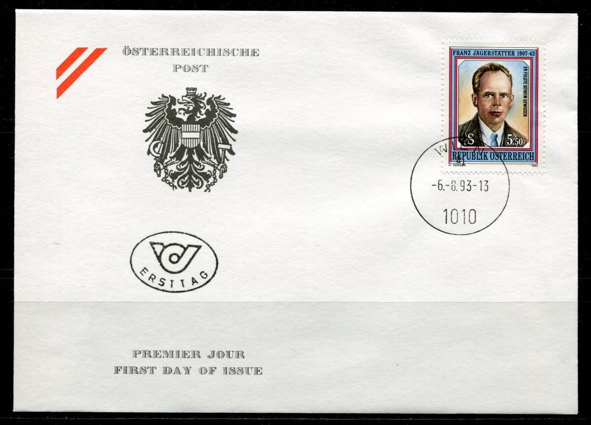 - オーストリア 1993年 人物 運動家 FDC 初日カバー z8706