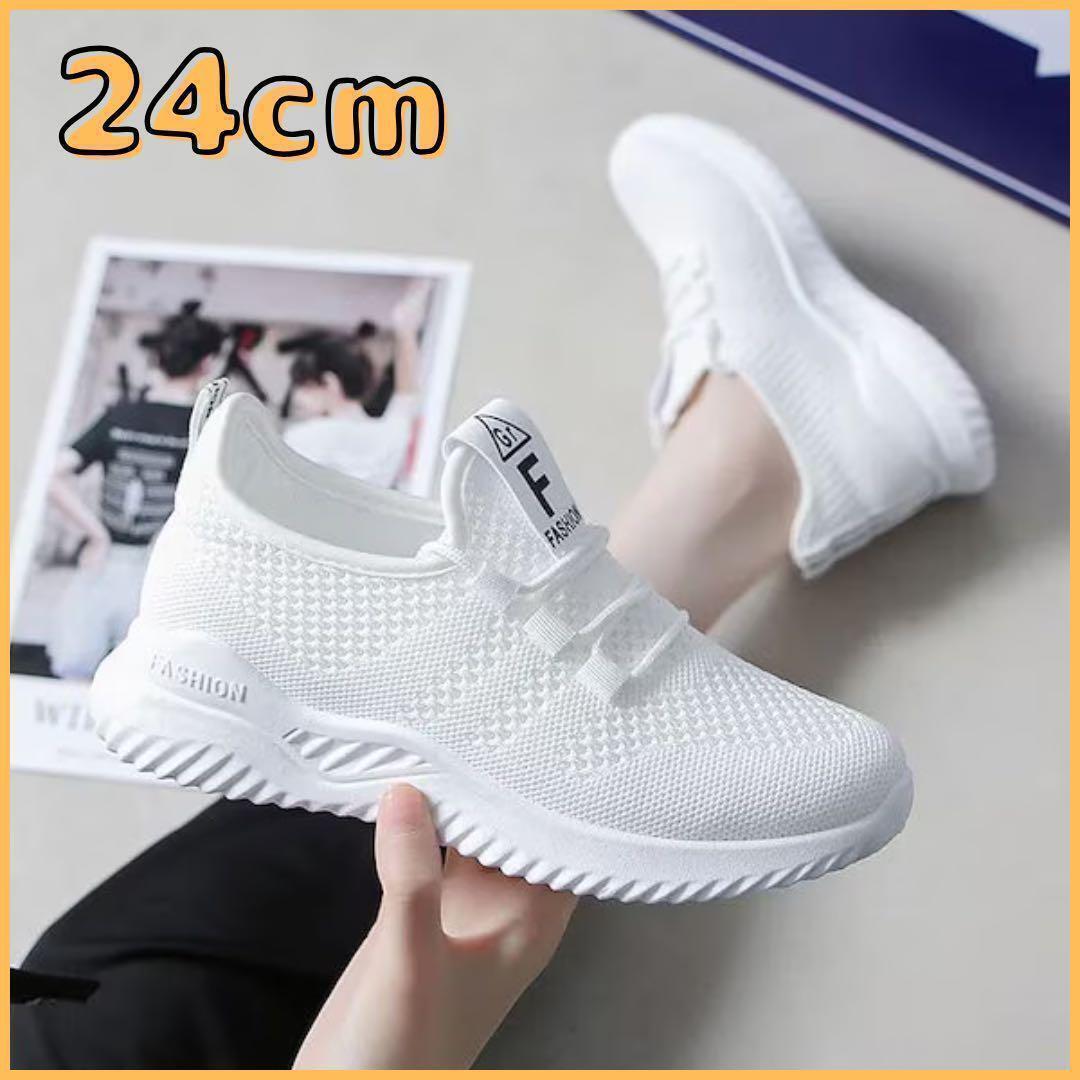 > スニーカー 24 白 軽量 ジム ウォーキング ランニング ナースシューズ スポーツ 通気性 メッシュ ホワイト 運動
