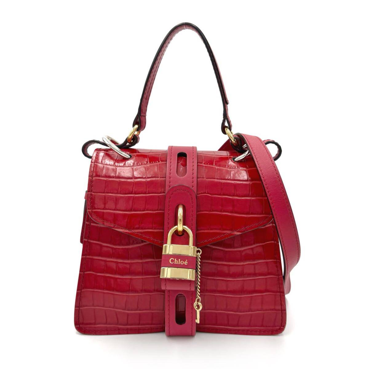 - クロエ アビー スモール ハンドバッグ 2way クロコ型押し レッド系
