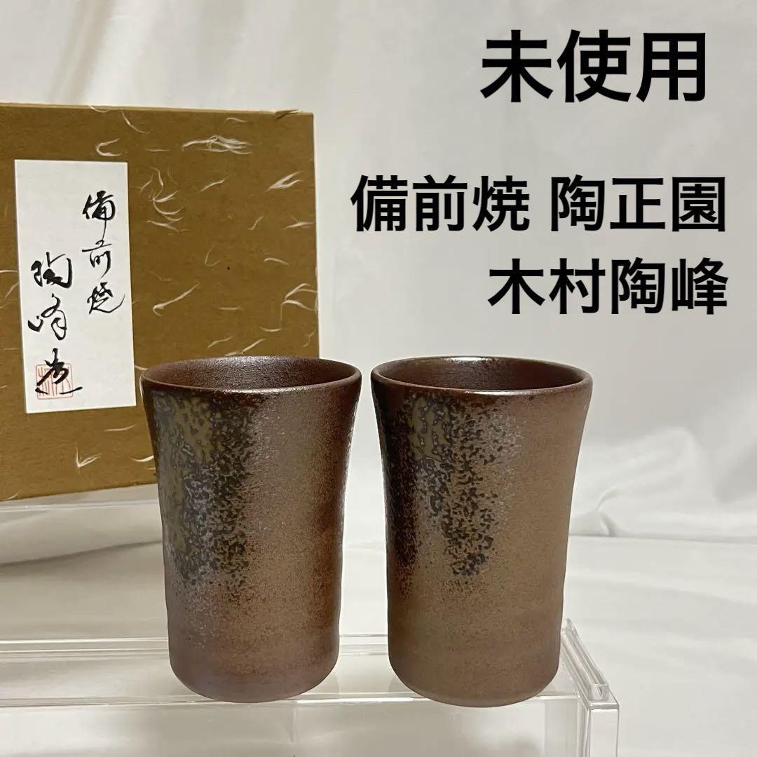 - 未使用 備前焼 ペア フリーカップ 陶正園 木村陶峰 木村勉 食器 酒器 作家物