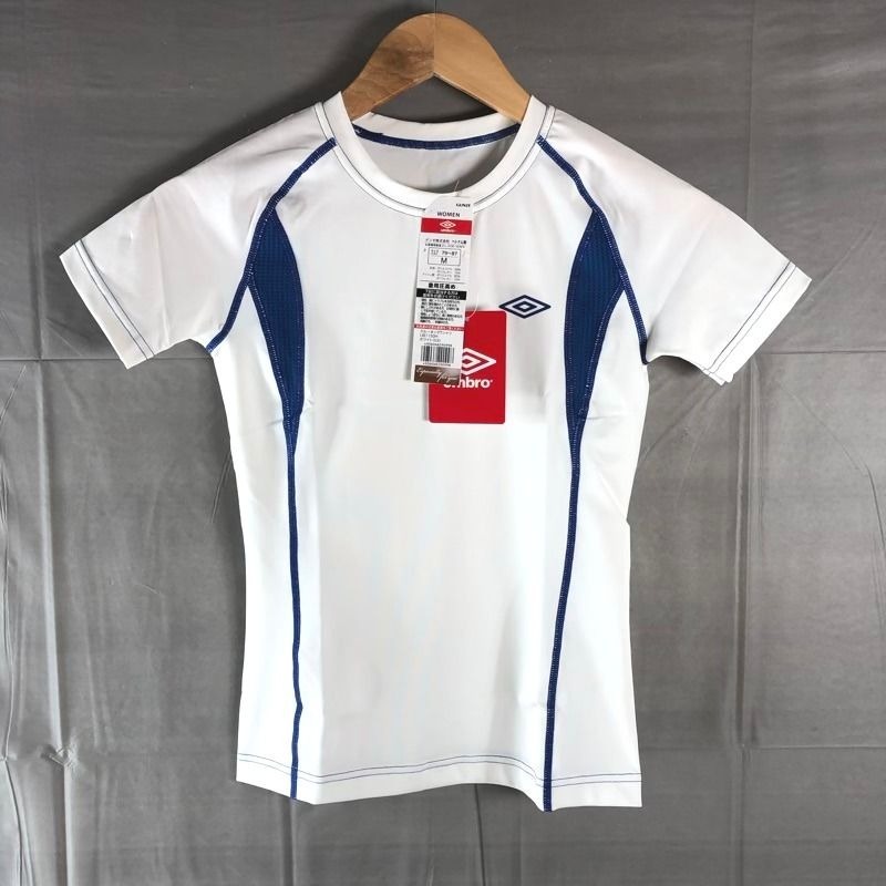 - アンブロ UMBRO Tシャツ 半袖 クルーネック ロゴ入り UVブロック ドライ 着用圧高め タグ付き 白 Mサイズ 2025052700553