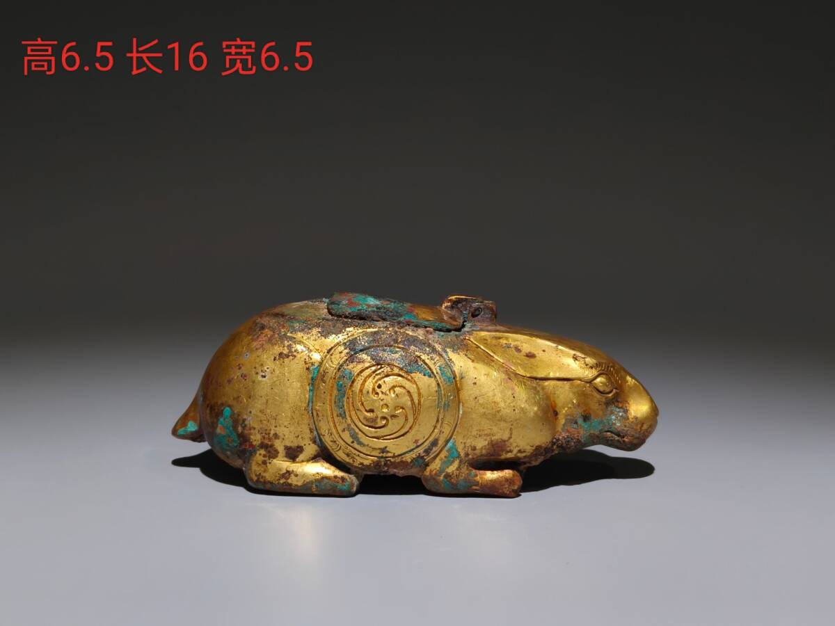- 蔵友旧蔵出 漢 青銅作 塗金 火紋兔尊 希少珍品 貴重品 置物 古賞物 中国古玩 中国古美術品 館蔵品