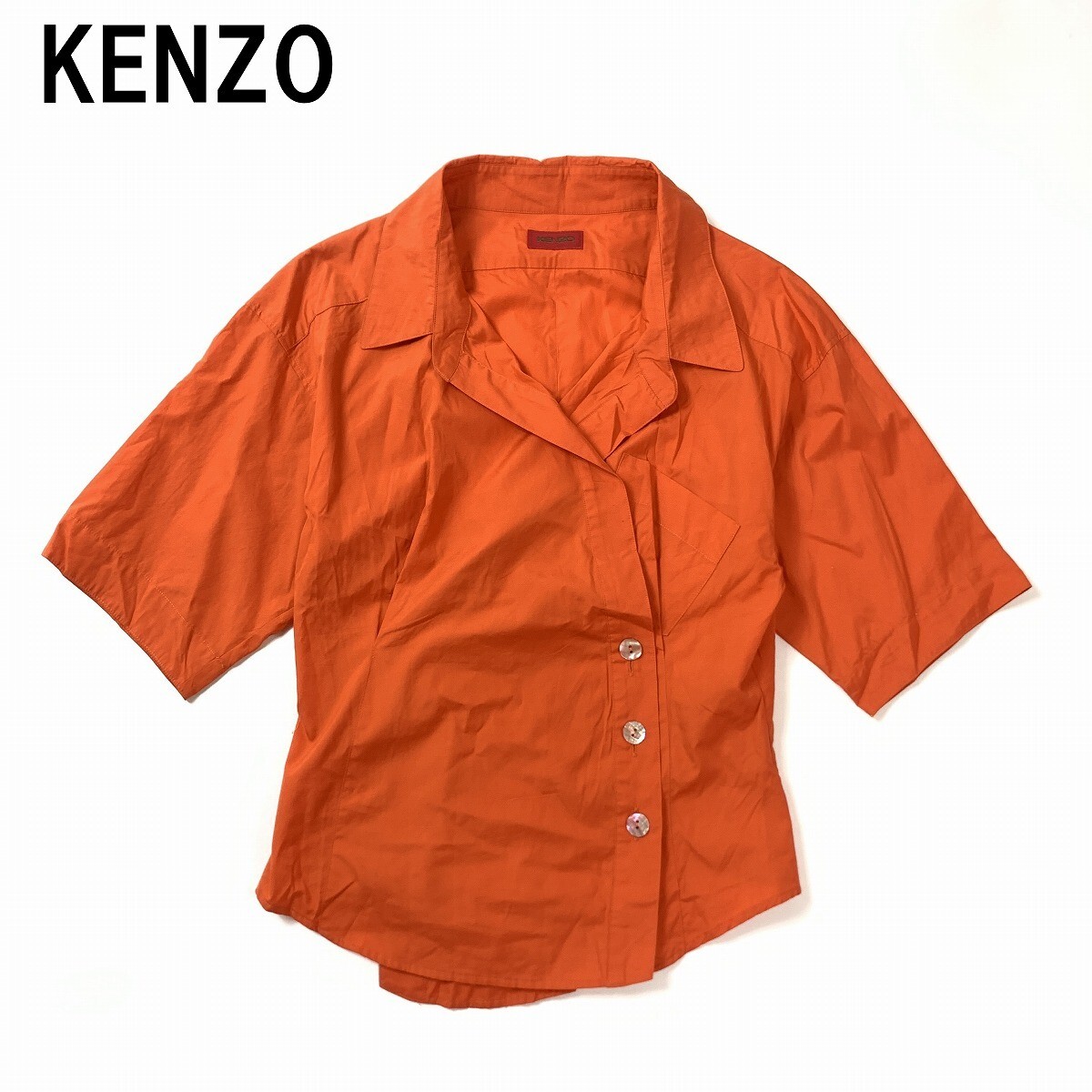 - KENZO ケンゾー 半袖シャツ ブラウス 綿 コットン アシンメトリー 開襟 オープンカラー オレンジ M YC889