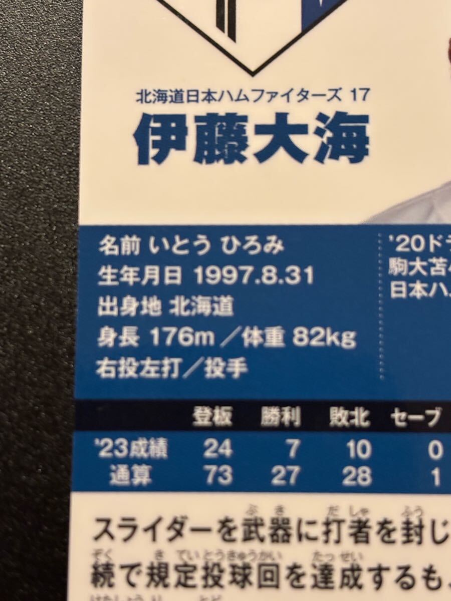 > 身長176m エラープリント 2024 伊藤大海 プロ野球チップス カルビー 検 BBM epoch 1st title 日本ハムファイターズ 侍ジャパン