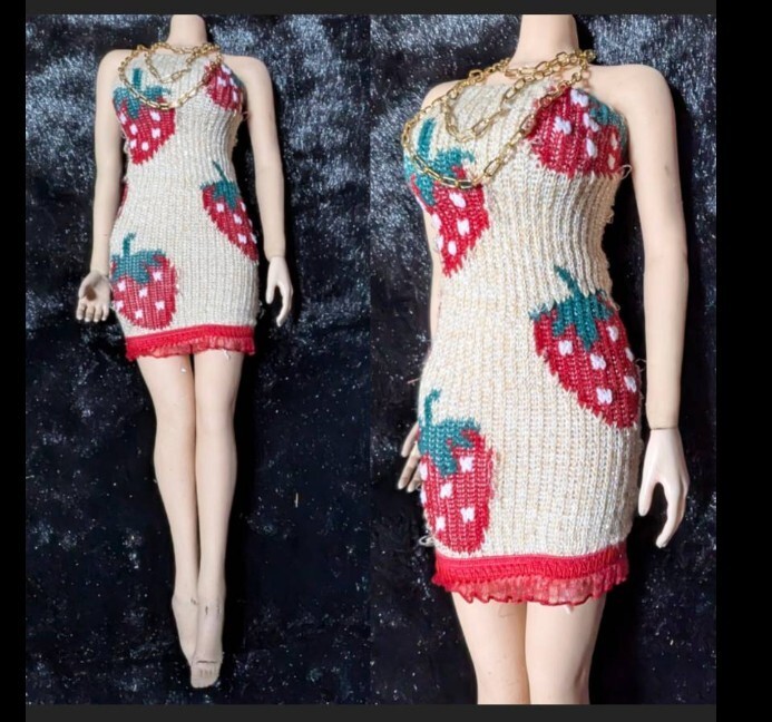- 1/6ドール用 TBLeague ファイセンS07 クールガール イチゴ柄ボディコンシャス ゴールド三連ネックレス