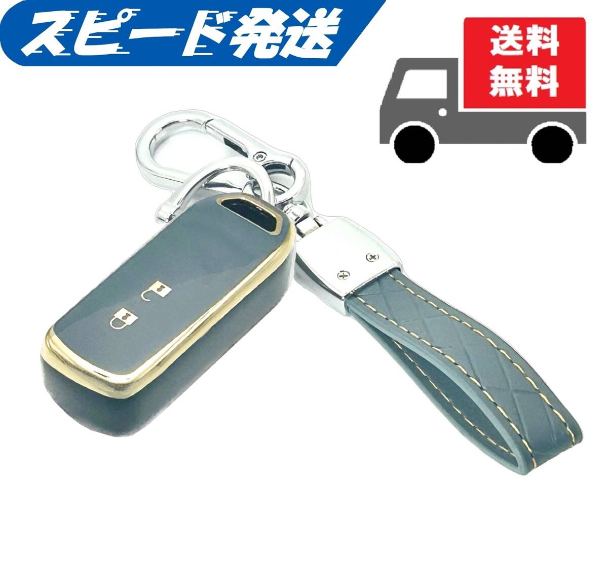 > 送料無料★キーホルダー付き★HONDA ホンダ N-BOX Nシリーズ★キーケース キーカバー★ブルーグレイ2ボタン★Bタイプ