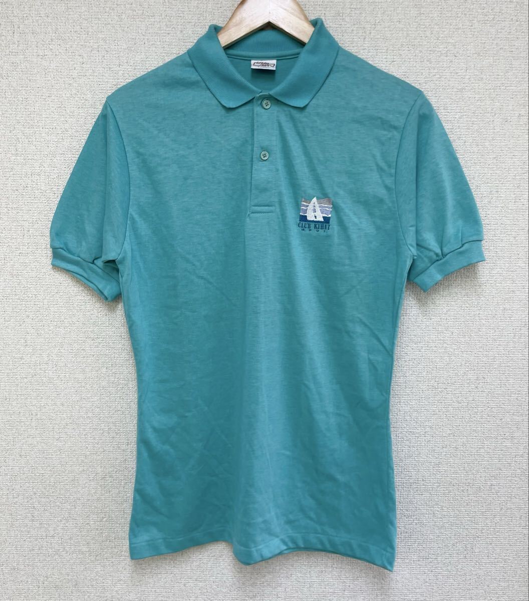 > Crazy Shirt USA製 半袖 ポロシャツ ピケシャツ メンズ Sサイズ 刺繍ロゴ エメラルドグリーン ビンテージ アメカジ US古着
