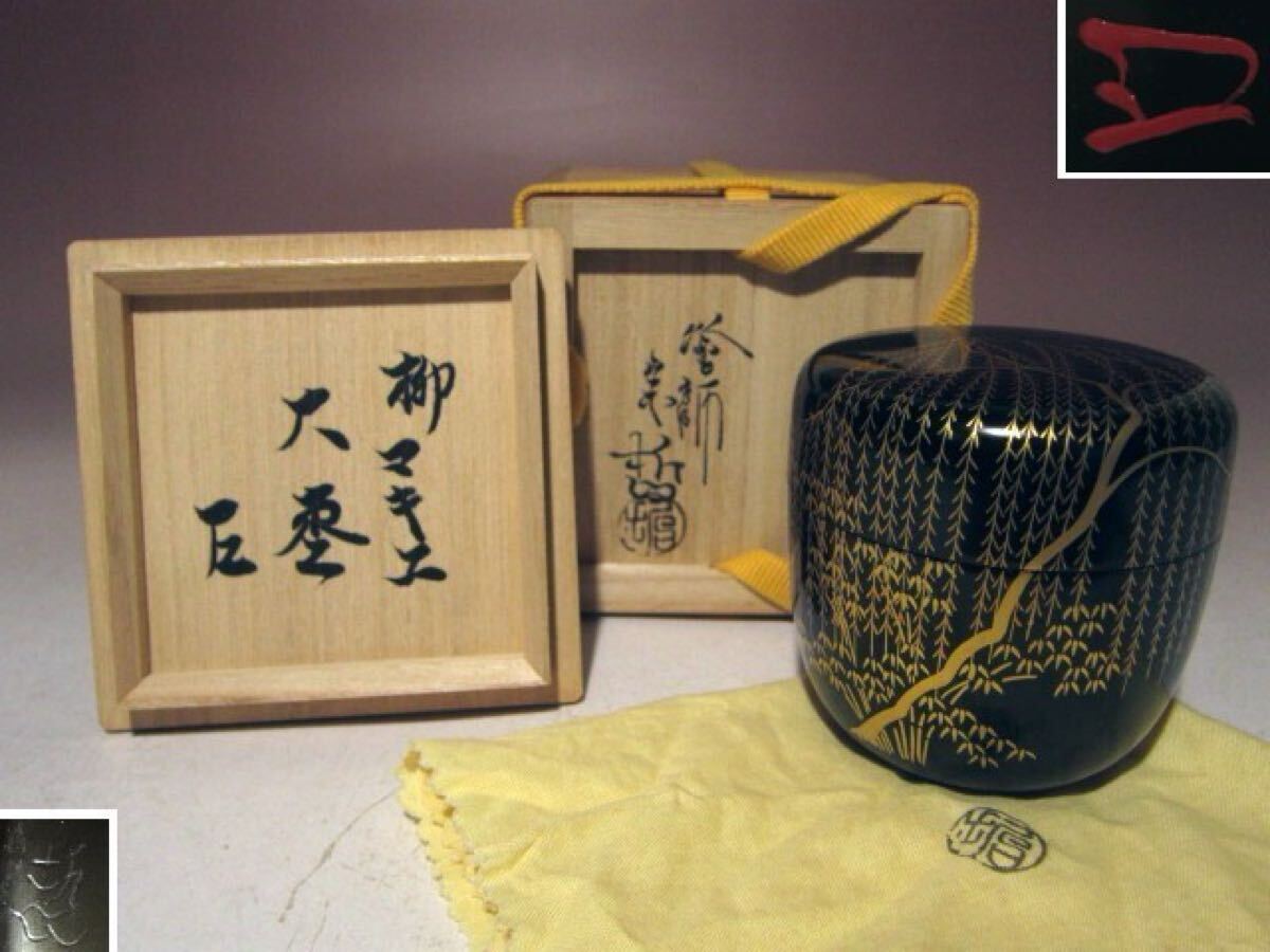 - 千家十職 塗師中村宗哲 柳蒔絵大棗★表千家而妙斎花押★o632