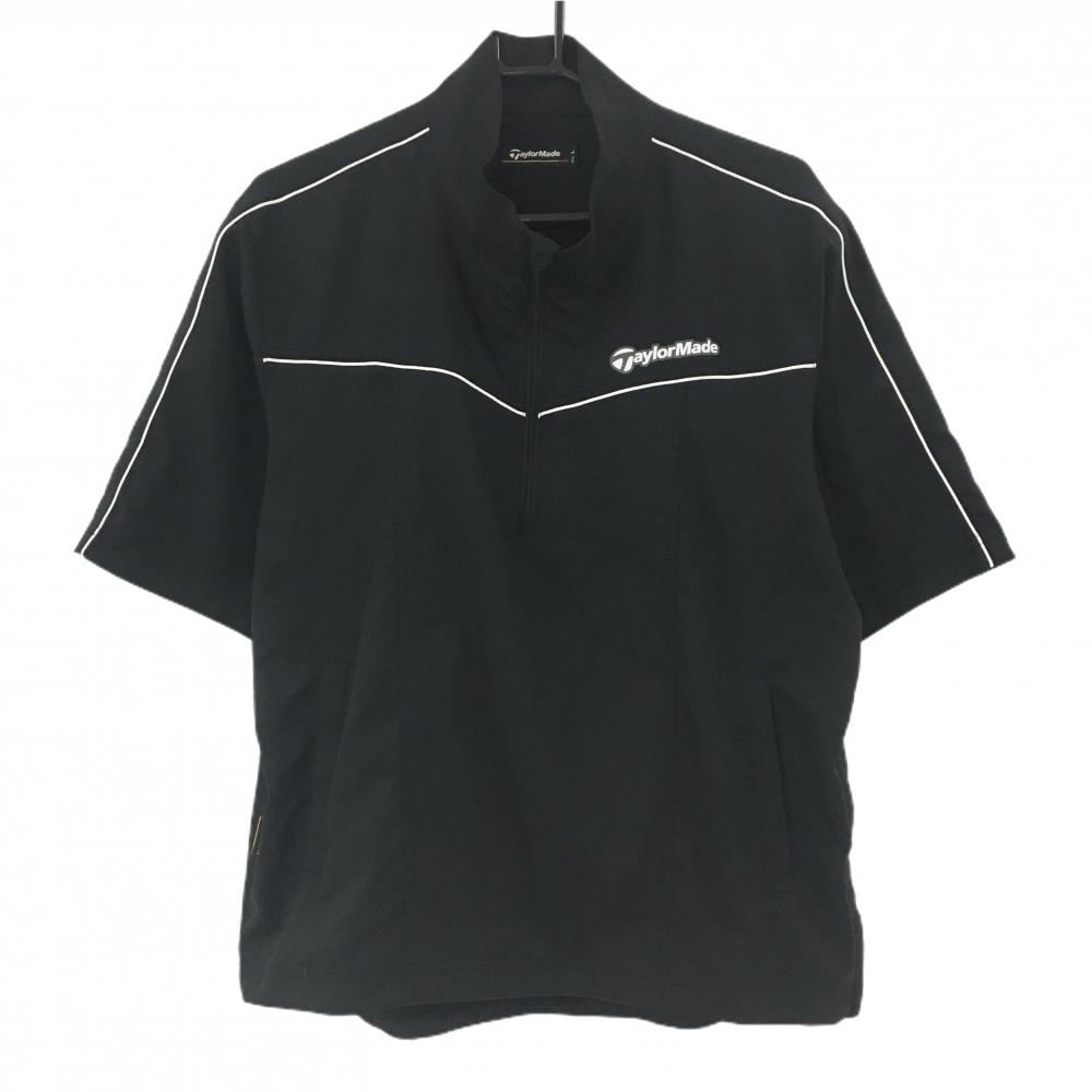 > 【超美品】テーラーメイド 半袖ブルゾン 黒 ロゴ白 ハーフジップ 薄手 メンズ L ゴルフウェア TaylorMade