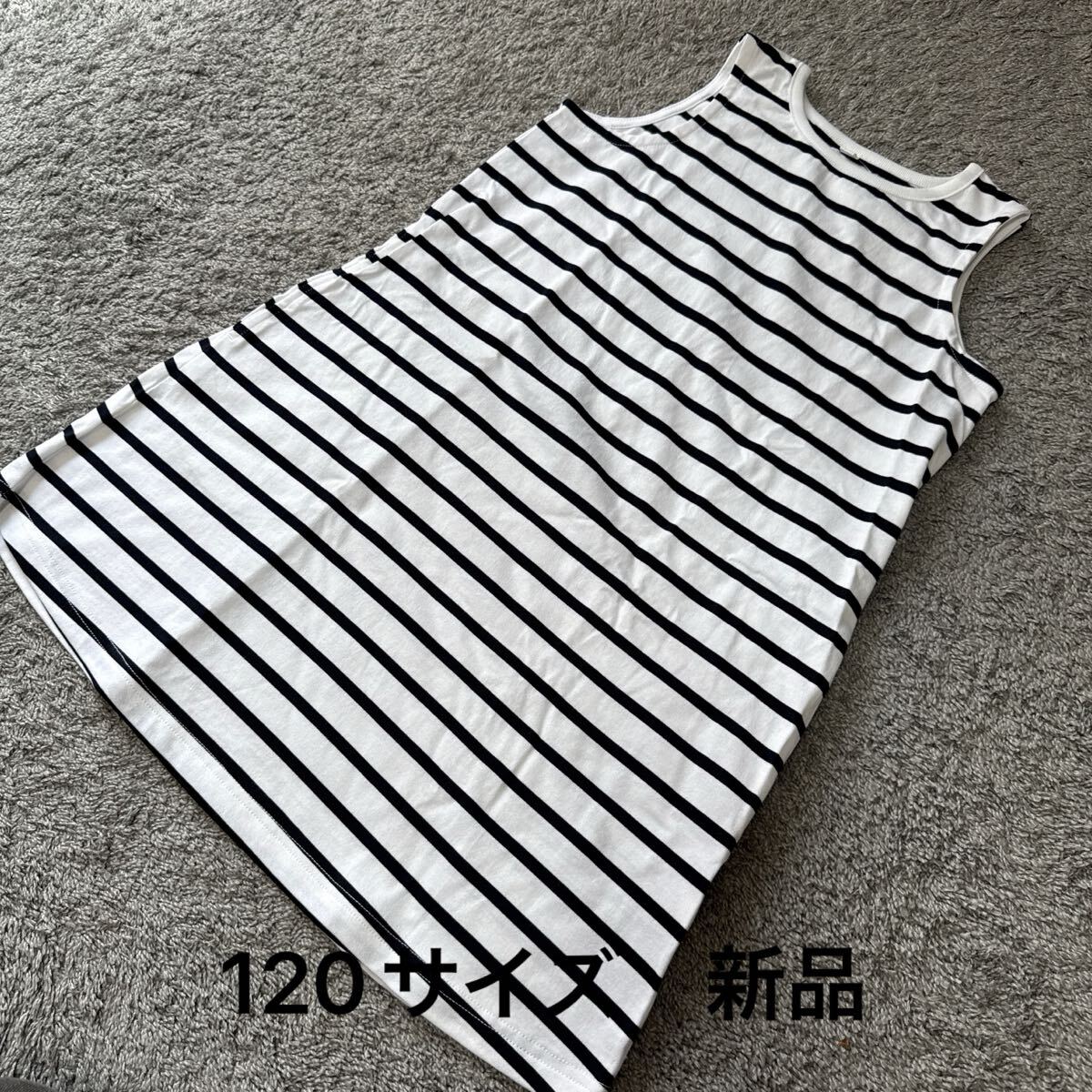 > こども服 ボーダーノースリーブロングワンピースオフ白120★ゆうパケット配送可能★新品36