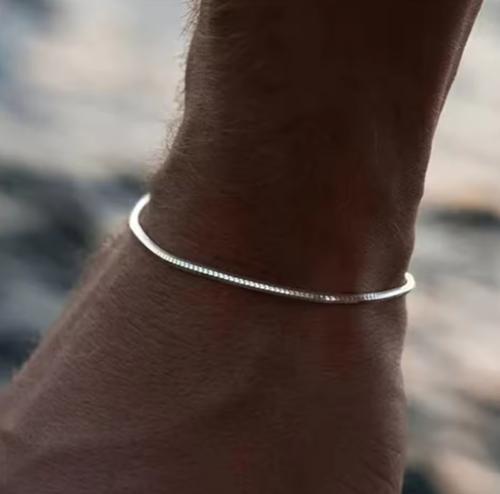 - 1048★新品未使用★シルバー ブレスレット&アンクレット 17+5㎝ さびにくい シンプル 男女兼用 ヴィンテージ メンズ チェーン 喜平 細い