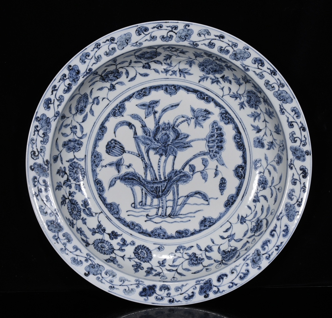 - ◆蔵出◆古美術 中国古玩 明時代 洪武青花 纏枝蓮花紋大盤 時代物 AT08
