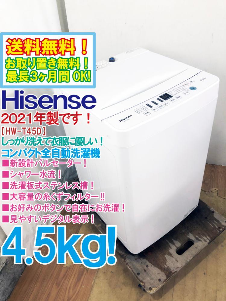 > ◆送料無料★2021年製★ 中古★Hisence 4.5㎏ しっかり洗えて衣服に優しい!!大容量糸くずフィルター搭載 洗濯機【◆HW-T45D】◆C0Y