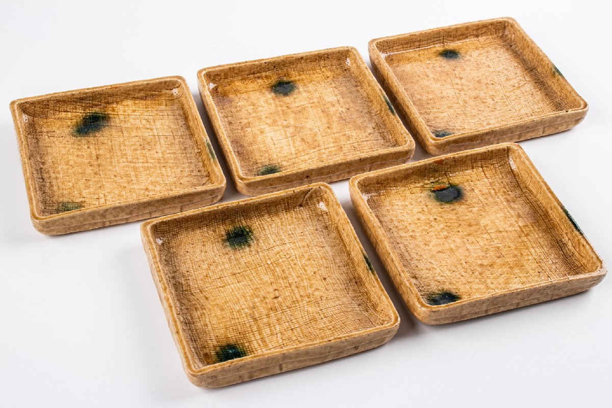 - 【うつわ】 山口錠鉄 黄瀬戸四方皿 5客 E2169 茶道具 古美術 骨董 古玩 唐物 日本料理 会席 料亭 和食器
