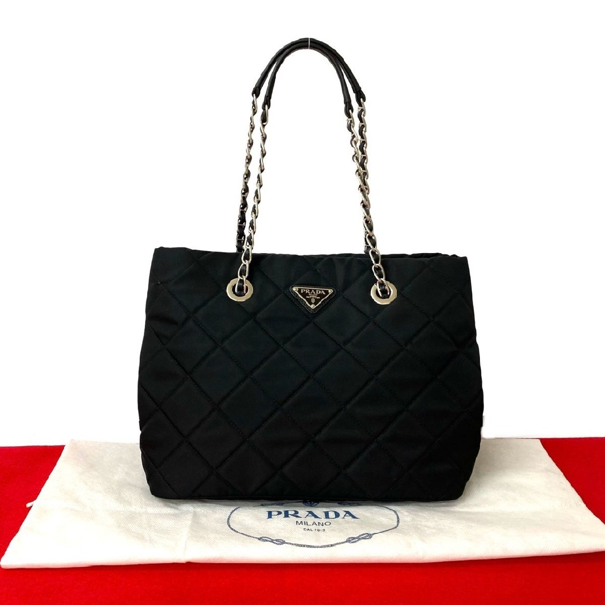 - ほぼ未使用 袋付 PRADA プラダ 三角ロゴ 金具 キルティング ナイロン レザー セミ ショルダーバッグ ミニ トートバッグ ブラック 15546