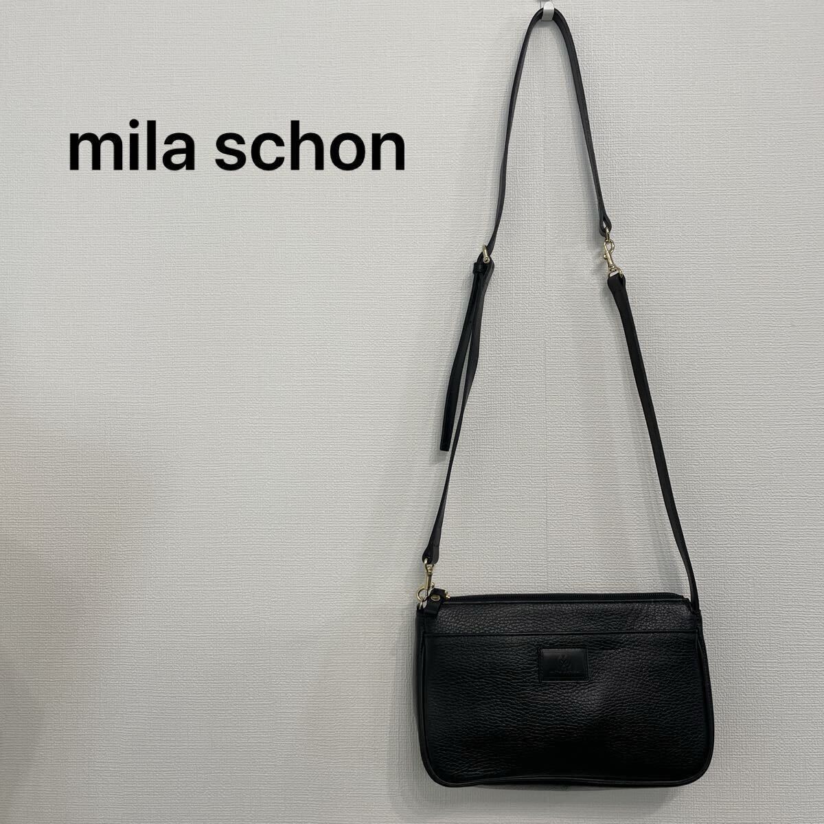 - 【568】mila schon ミラショーン ショルダーバッグ ブラック 斜め掛け マチあり 黒