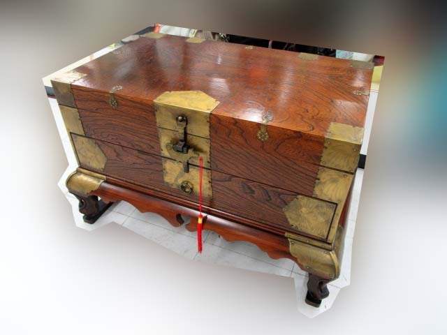 李朝風家具 収納箱 幅 約89cm 木製 ブラウン系 収納ボックス 家具 カギ付き 中古 現状品 収納家具 苫小牧西店