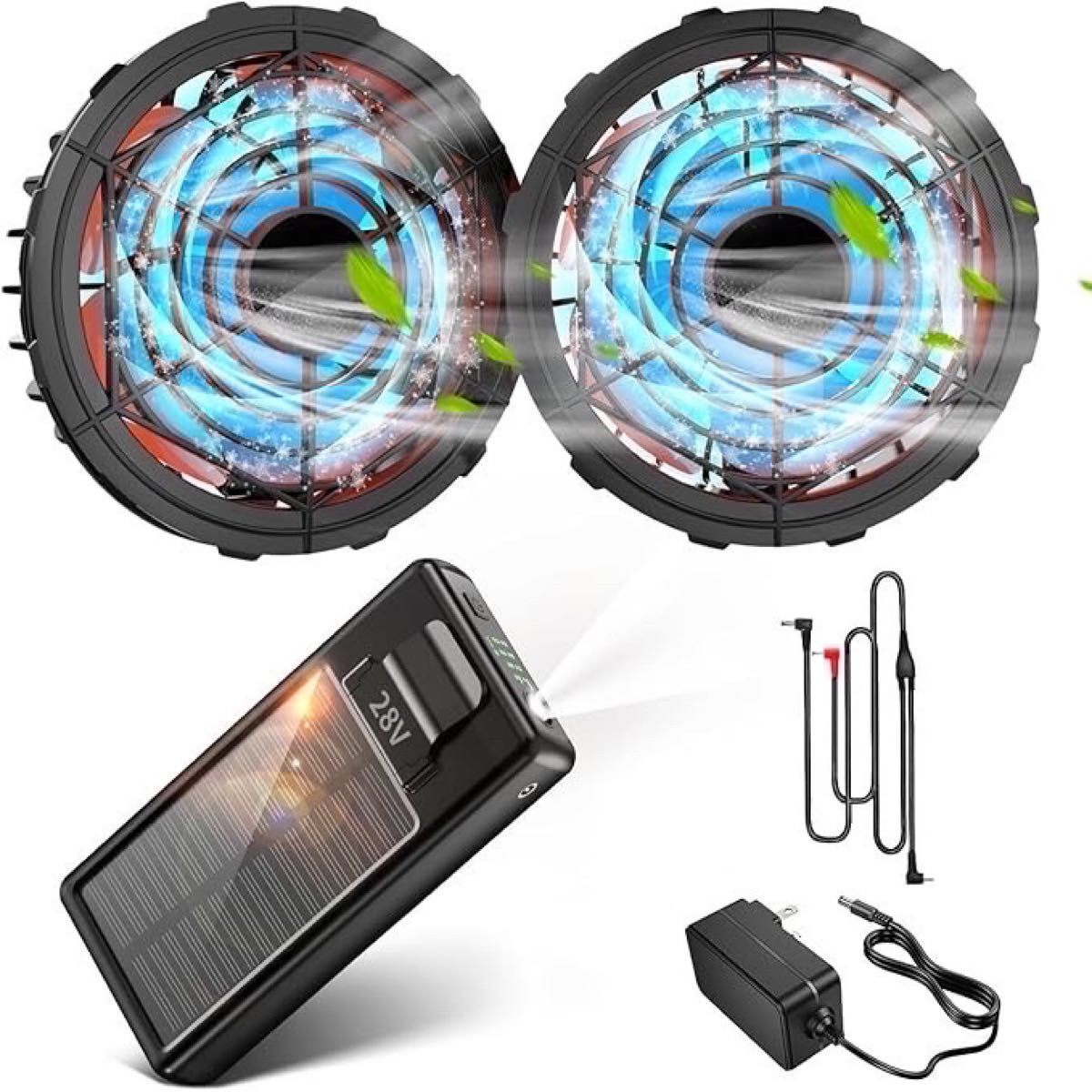 - 28V 高出力 30000mAh 大容量 5段階風量調 ファン バッテリー セット 熱中症対策 散歩 登山 サイクリング