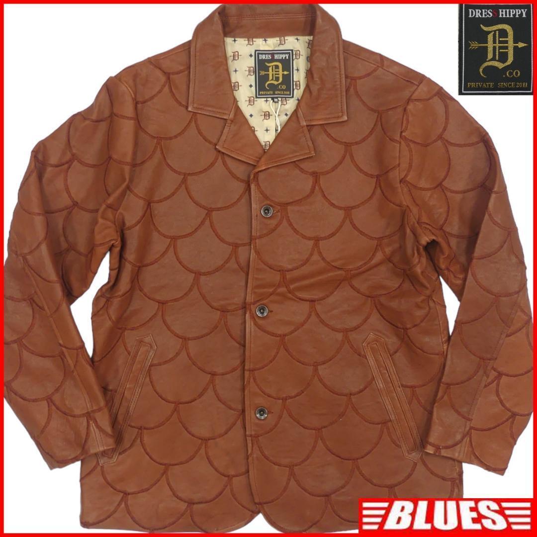 - 即決★DRESS HIPPY★未使用 メンズL レザーテーラードジャケット ドレスヒッピー ウロコ刺繍 内総柄 本革 ブレザー 本皮 革ジャン 背広