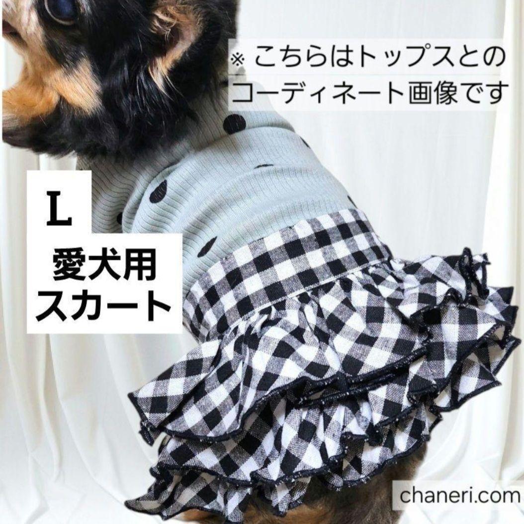 - 【L】新品 犬服 ギンガム チェック 3段フリル スカート 愛犬用スカート 3段スカート フリフリ ボリューム 可愛い 小型犬 単品 ブラック