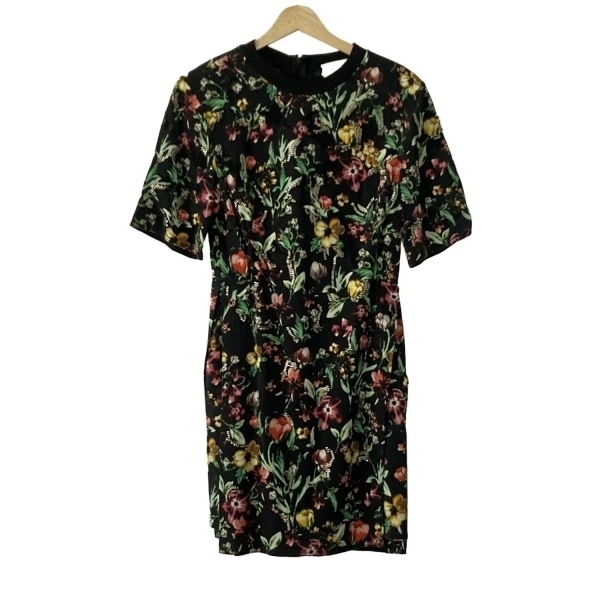 > スリーワンフィリップリム 3.1 Phillip lim サイズ0 XS - 黒×グリーン×マルチ レディース クルーネック/半袖/ひざ丈/花柄/ビーズ 美品