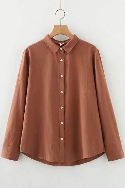 - c 2508 ワイシャツ フリーサイズ チュニック トップス ナチュラル 綿100% 通気性肌触り抜群 サラサラ ゆったり 煉瓦色系