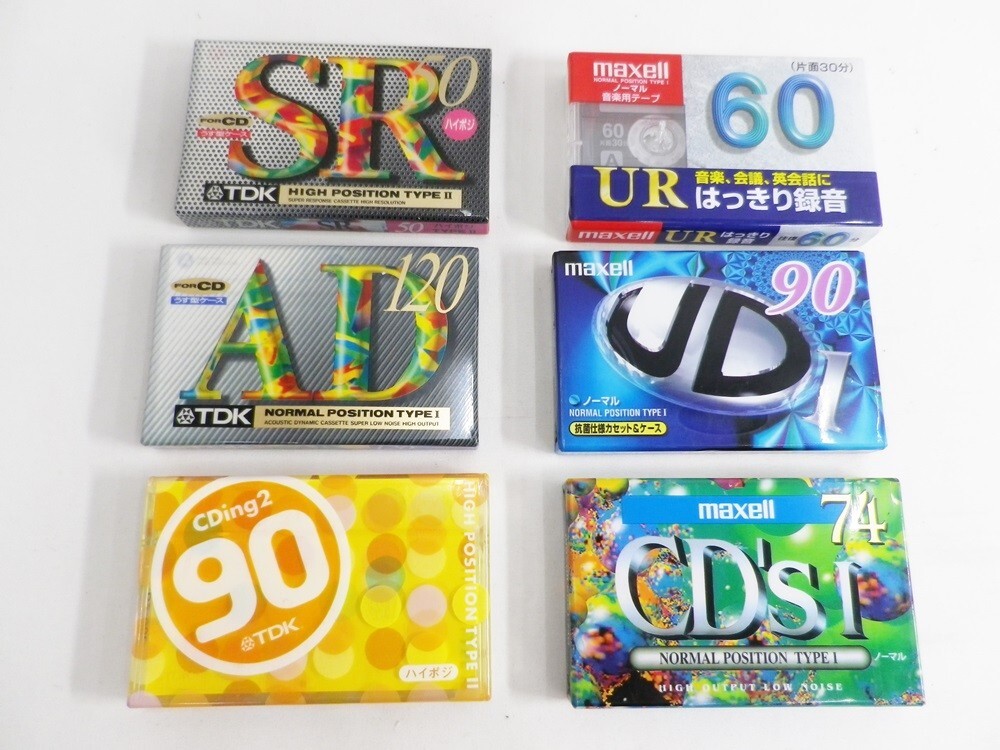 > 28☆0049 TDK SR50 AD120 CDing90 maxell UD190 CDs174 UR60 カセットテープ 6本セット まとめ 旧品 未使用品 現状渡し☆