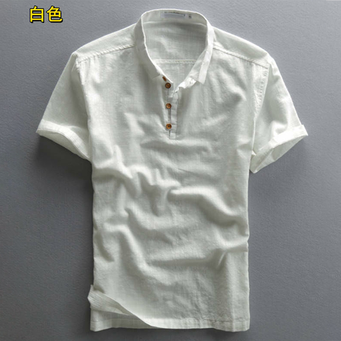 - ポロシャツ リネンポロシャツ メンズポロシャツ 半袖ポロシャツ スリム ジャージポロシャツ 綿麻 トップス Zty-2285 白色 5XL