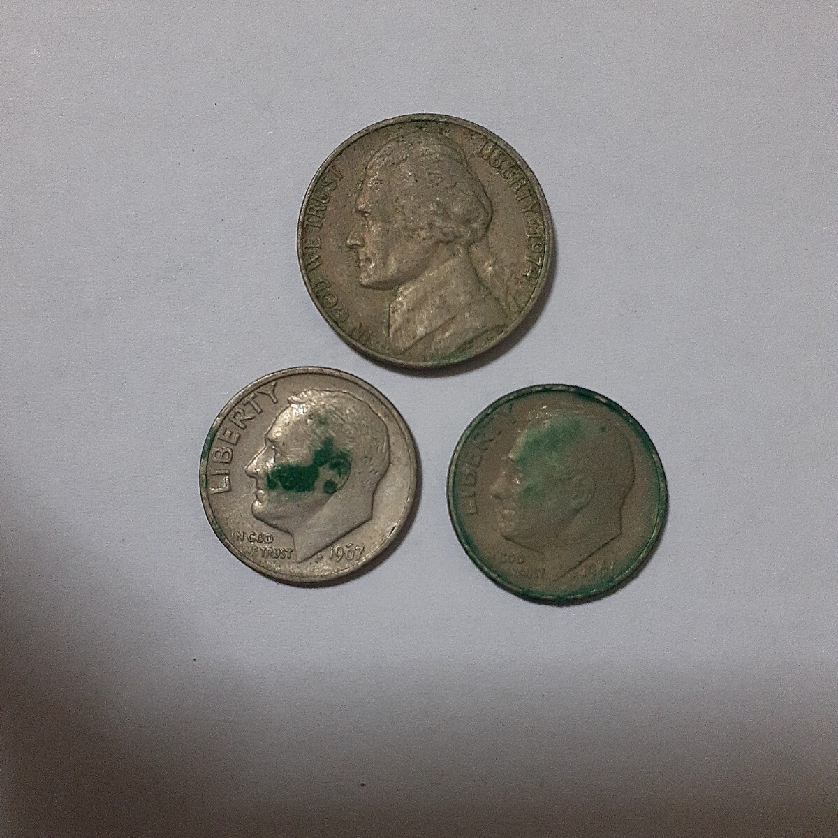 - 海外古銭 アメリカ リバティコイン 3枚セット 10セント (1966年1枚 67年1枚) 5セント(1974年1枚) 海外硬貨