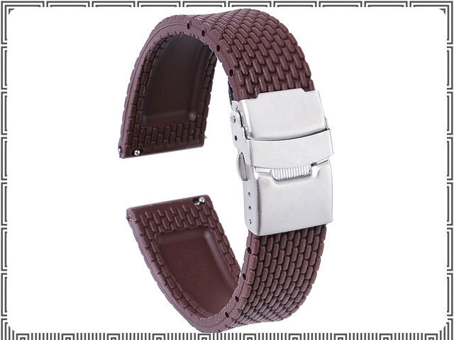 - 新品 時計ベルト 時計バンド 22mm シリコン ブラウン バネ棒付 メッシュパターン 交換ベルト [2081:madi]