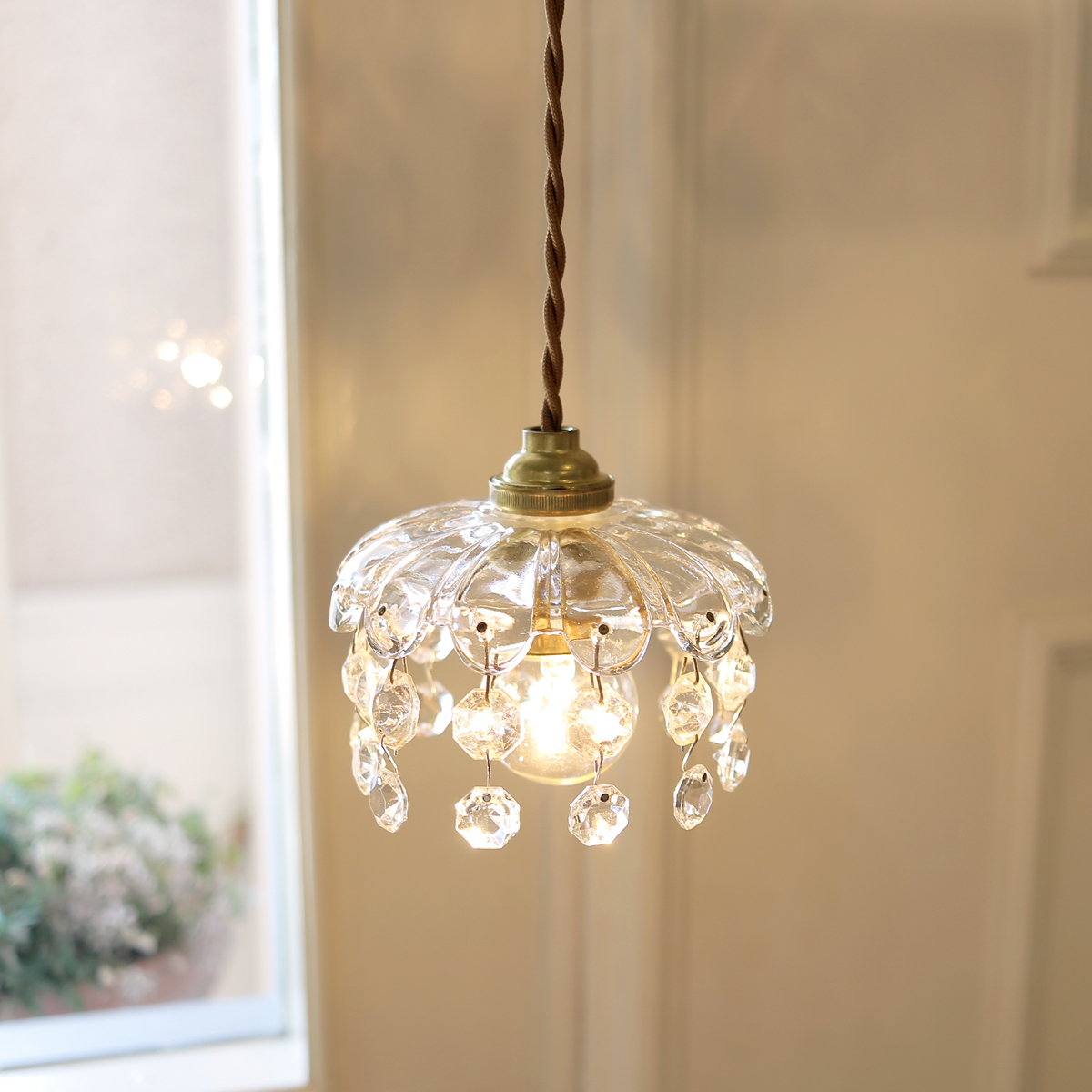 - 『小さなドットのミニシャンデリア』フランスアンティーク ミニシャンデリア クリスタル/オールドバカラ ペンダントランプ 照明 灯具 B*