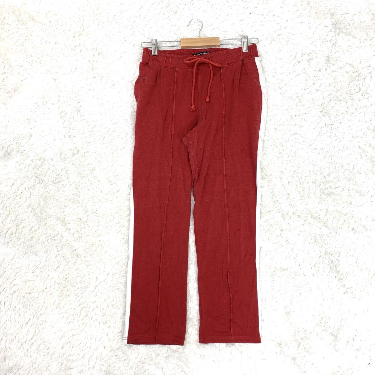 > Abercrombie & Fitch アバクロンビー&フィッチ カジュアルパンツ ジャージ イージーパンツ ウエストゴム 赤 レッド白 ホワイト S YA9941